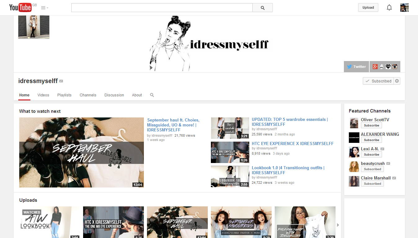 I really enjoy the videos and blogposts that idressmyselff creates. I relate to her style, and a lot of the outfits she wears are absolutely stunning. My favourite videos are definitely her lookbooks, with her ‘what did I wear’ s and ‘outfit inspirations’ coming in 2nd and 3rd. She’s very much more fashion orientated, so there are so many outfit videos to watch. I thoroughly recommend a binge. Go on. go onnnn.