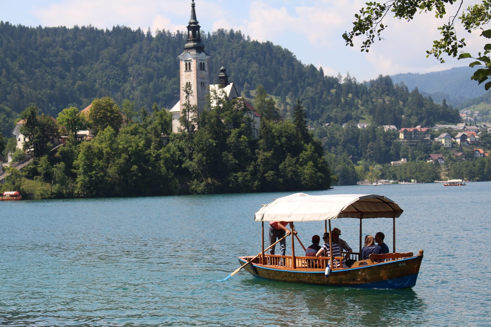 The heat wave was also starting to set in properly, so we had absolutely gorgeous blue skies, and the entire lake looked like it was sparkling. We did feel really sorry for the guys rowing the traditional Slovenian Pletna’s across the lake – it looked like an awful lot of hard work… especially if the boats were really full. But they did look lovely on the water…
